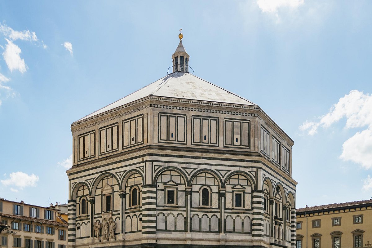 完成前文所述内容后,我们将转向佛罗伦萨洗礼堂——其精美绝伦的金色马赛克艺术与珍贵的青铜雕塑《天堂之门》同样闻名遐迩。 若想提升游览体验(可自行安排节奏),可从洗礼堂步出,攀登乔托钟楼至顶端,从高处饱览整座城市陶瓦屋顶的壮丽全景。