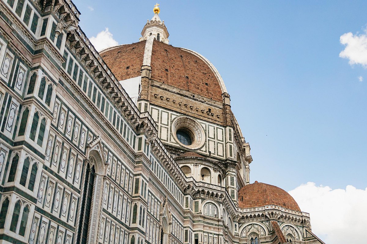 下午的行程将带您进入圣母百花大教堂内部(例如参观布鲁内莱斯基建造的穹顶巨室),与上午仅在广场外观赏大教堂的行程不同——后者让您感受这座大理石外墙建筑的宏伟规模与精妙设计。