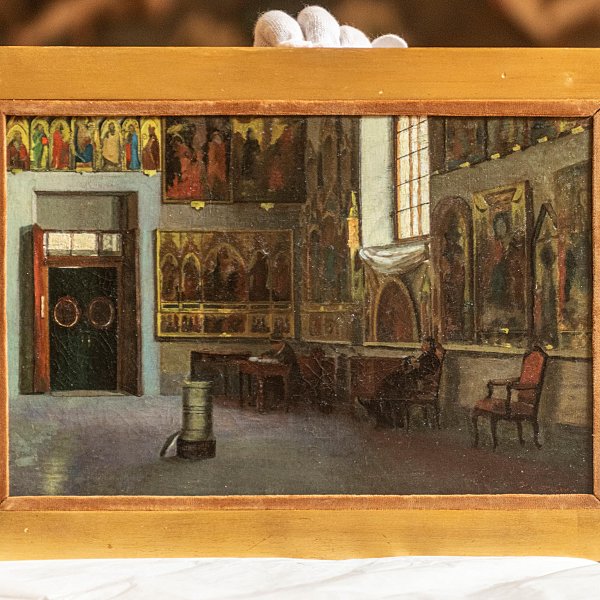 这幅作品很可能与博拉尼于1880年代创作的其他描绘佛罗伦萨学院美术馆展厅的画作同期完成,此前从未向公众展出过