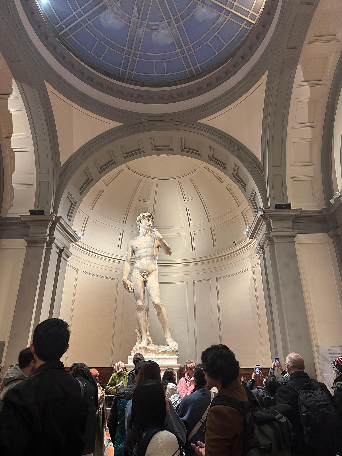 Sin duda, lo más destacado de este viaje es el momento en que te encuentras frente al David, ese hombre icónico, imponente y apuesto, que redefinió la escultura y es símbolo de fuerza y belleza.