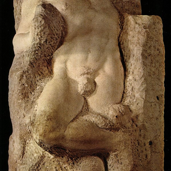 이 죄수의 형태는 대리석 블록에서 겨우 모습을 드러내기 시작했습니다. 가슴과 머리의 강력한 근육과 비틀림은 인물이 물질의 무게와 자신의 한계를 벗어나 상승하기 위해 투쟁하고 있음을 나타냅니다. 이는 미켈란젤로의 예술 철학에서 핵심적인 개념이었습니다. 조각가의 조각칼과 깎는 도구로 남긴 흔적은 대리석을 거의 그림 표면처럼 만들며, 동시에 빛과의 상호작용을 강조해 가치를 부여합니다.
