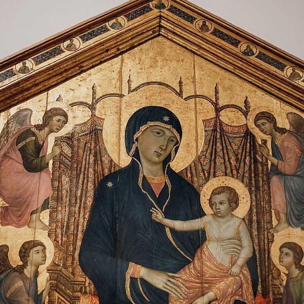 지오토 양식의 방에 있는 그림들은 소형 형식으로 제작된 개인 예배용 이동식 성화입니다. 과거에는 상인이나 순례자들이 위험한 여행에 동반하기 위해 사용되었습니다. 기부자들은 보통 후원자의 이름에 따라 선택된 성모 마리아나 특정 성인의 보호를 청하며 안전한 여행을 기원했습니다.