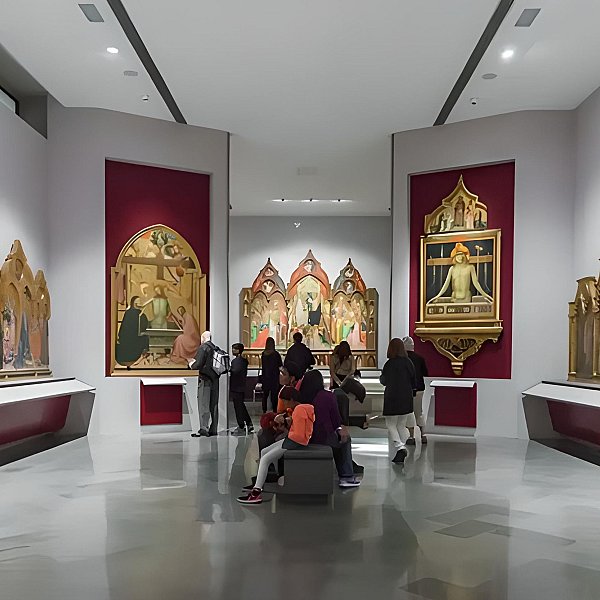아카데미아의 1층(또는 위치에 따라 2층)은 지상층보다 확실히 덜 붐빕니다. 2013년에 완전히 재구성된 이 층은 1370년부터 1420년까지의 피렌체 회화 작품 컬렉션에 전념하고 있습니다. 새로운 조명 덕분에 분위기는 더 이상 차가운 느낌이 아니라 평화롭고 매력적이며, 최근 복원 후 돌아온 후기 고딕 양식의 피렌체 명작들을 감상하기에 딱 맞는 공간입니다.
