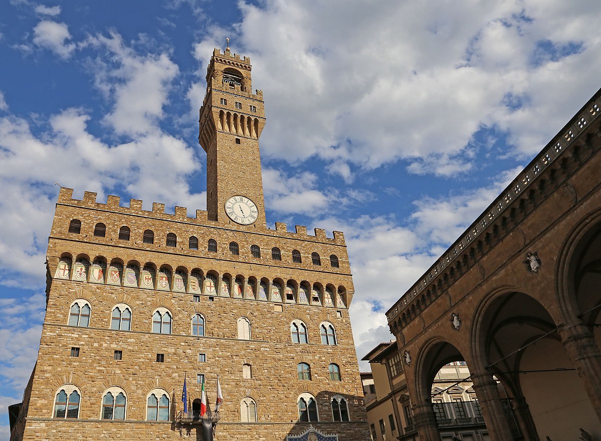 Посмотрите на статуи и дворец на площади Синьории и полюбуйтесь красочным мрамором Флорентийского собора и баптистерия.