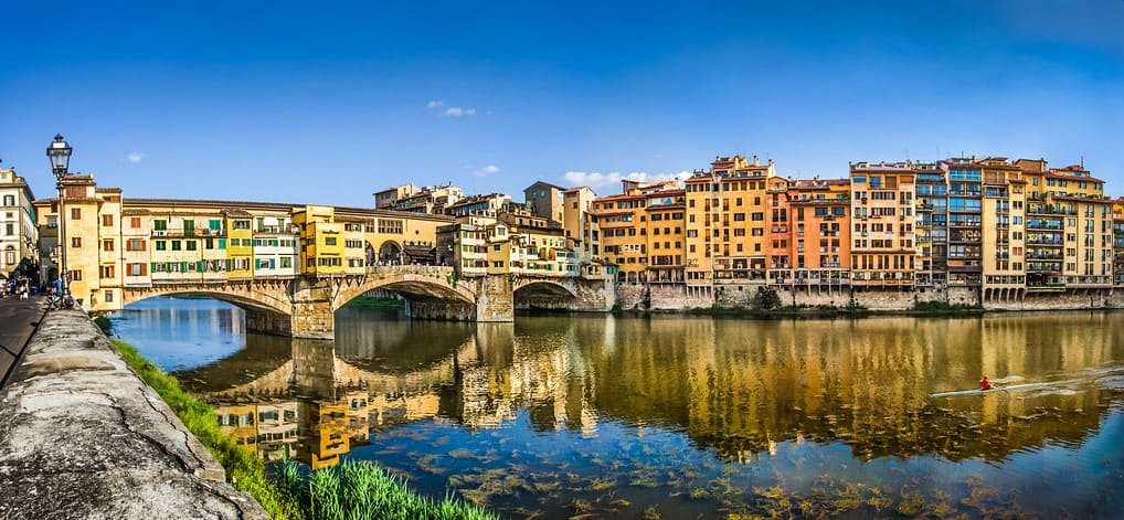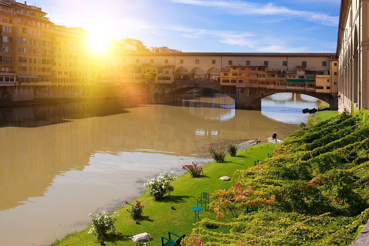 Прогуляйтесь по небольшим улочкам реки Арно и дойдите до Понте Веккьо, широко известного как самая знаменитая достопримечательность Флоренции, а также самый старый мост Флоренции, полный множества ювелирных магазинов.